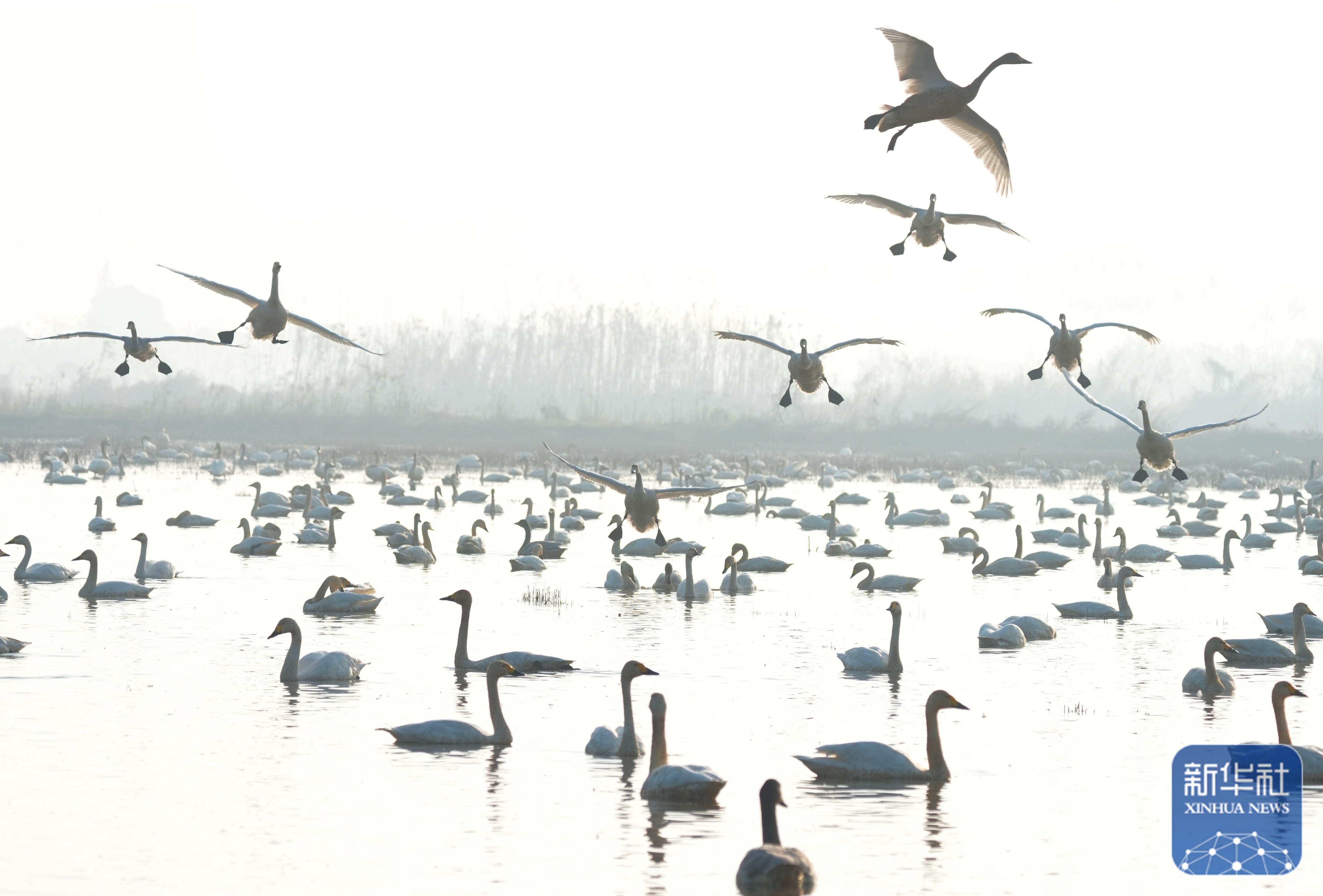 近日,大批小天鵝陸續(xù)飛抵湖南省岳陽市屈原管理區(qū)東古湖濕地。